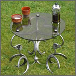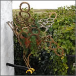 You can see from the above photo montage that Bob and Fiona have been busy over the summer, making more individually sculptured horseshoe art. The Pod and Stork are of a similar size to the large eagle, which "nests" at the bottom of the Newlandhead garden.